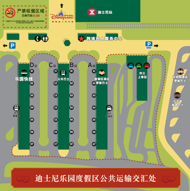 另外,于香港迪士尼乐园公共运输交汇处D区更设有乐园快线*来往皇岗口岸及香港迪士尼乐园,为宾客提供定时往返中国内地的路线服务。