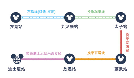 方法 2:也可选乘广深和谐号至罗湖口岸过关,再换乘港铁前往香港迪士尼乐园。