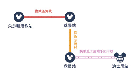 乘坐中国华通跨境巴士到达港铁尖沙咀站,再转港铁前往香港迪士尼乐园。