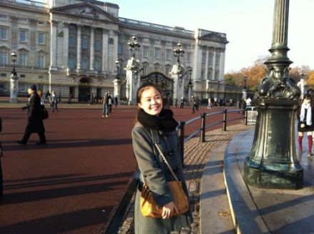 Vivian_Kuo :突然发现手机里存着这张照片。白金汉宫前的留影。那天英国女王就在里面呢 。