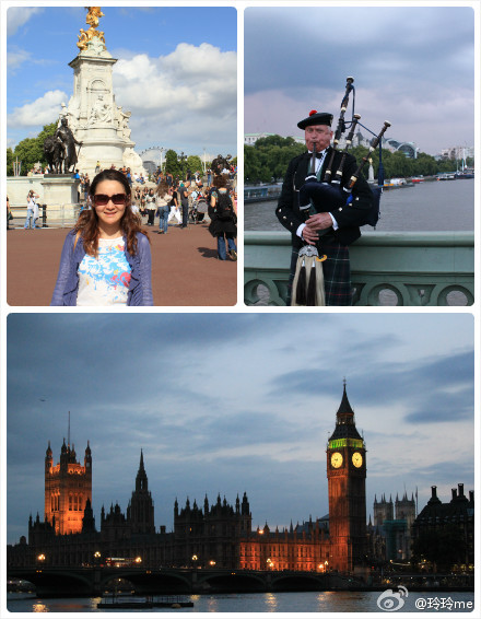 玲玲me:好想再回趟伦敦。泰晤士河畔随风笛声漫步,华灯初上,傍晚十分;白金汉宫、海德公园的阳光、白云和蓝天..