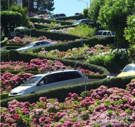 旅行沙发客 :【九曲花街——世界上最弯的街道】位于美国旧金山市区俄罗斯山丘上的这条街道有八个急转弯。成为旧金山最吸引人的一条街