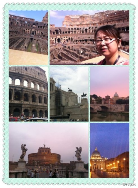 foguo :#June's Euro Trip# 10 一早去了斗兽场,有罗马Pass没排队。中午出来开始暴走:沿古罗马广场走到威尼斯广场,午饭后先上坎皮多利奥广场,下山到真理之口,回走花之田野广场,万神殿,到纳沃纳广场吃了大餐,最后又走到圣天使城堡,拍了圣彼得大教堂美丽的夜景﹣我们不是暴走族,是不知道坐什么车